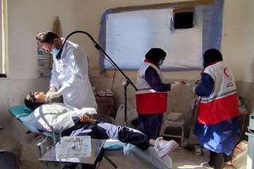 در بخش درمان تیمهای تخصصی با ارائه خدمات پزشکی عمومی و دندان پزشکی به صورت رایگان به معاینه و پایش سلامت اهالی پرداختند.
